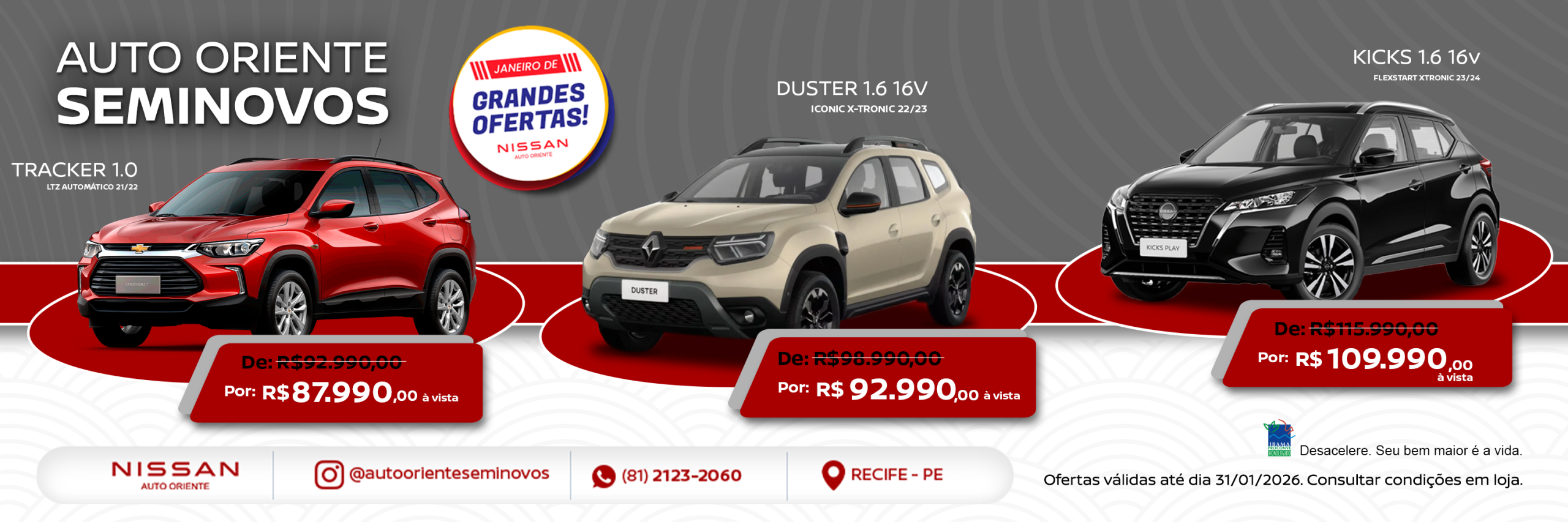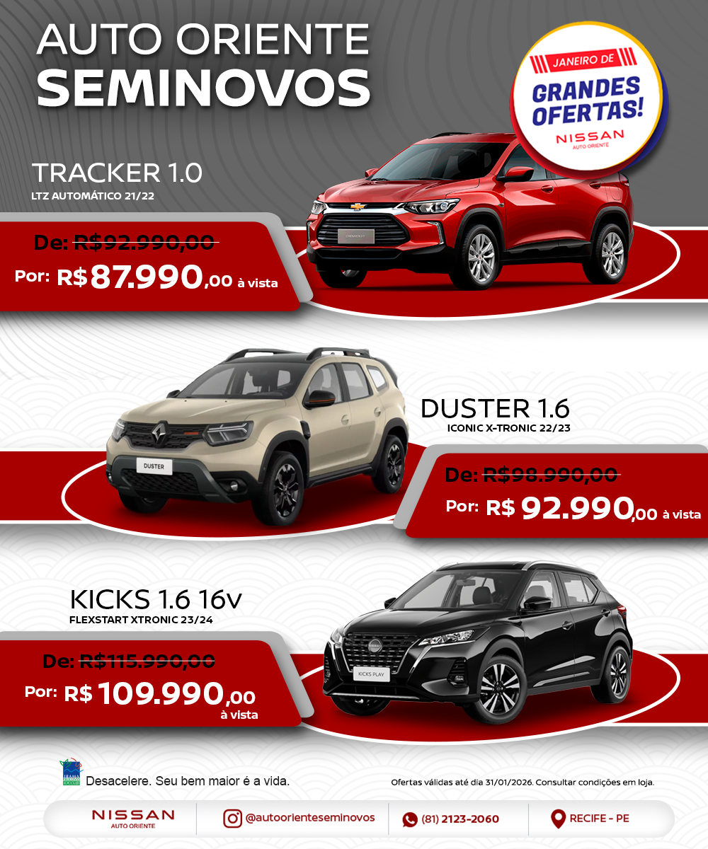 Aqui na Auto Oriente você tem à sua disposição toda a linha da Nissan 0km, para você experimentar na hora. Com um percuso desenvolvido especialmente para os nossos clientes, você poderá dirigir e conhecer de pertinho o carro que você tanto procura. Passe em uma Auto Oriente Nissan e solicite na hora seu test-drive ou para sua comodidade, preencha o formulário ao lado ou ligue para a nossa central de atendimento. QUEM TESTA COMPRA, COMPRA NISSAN!