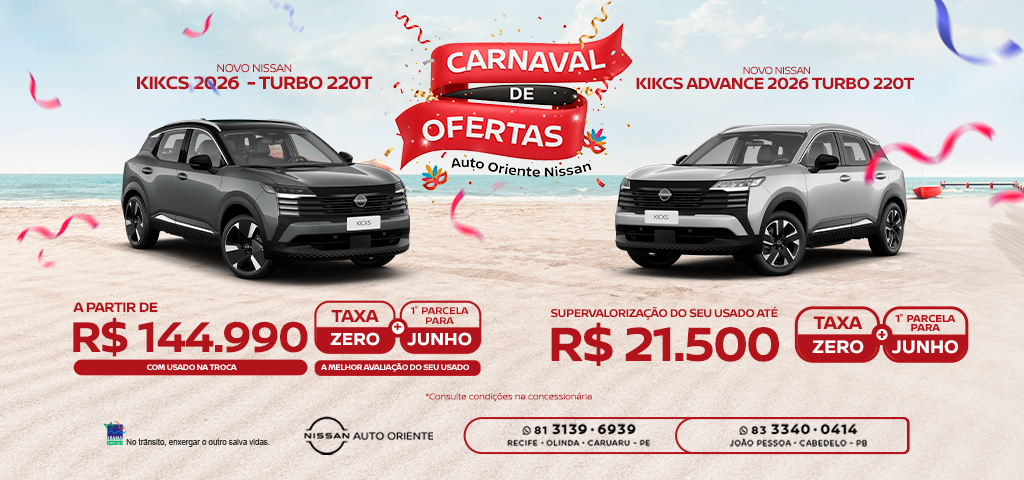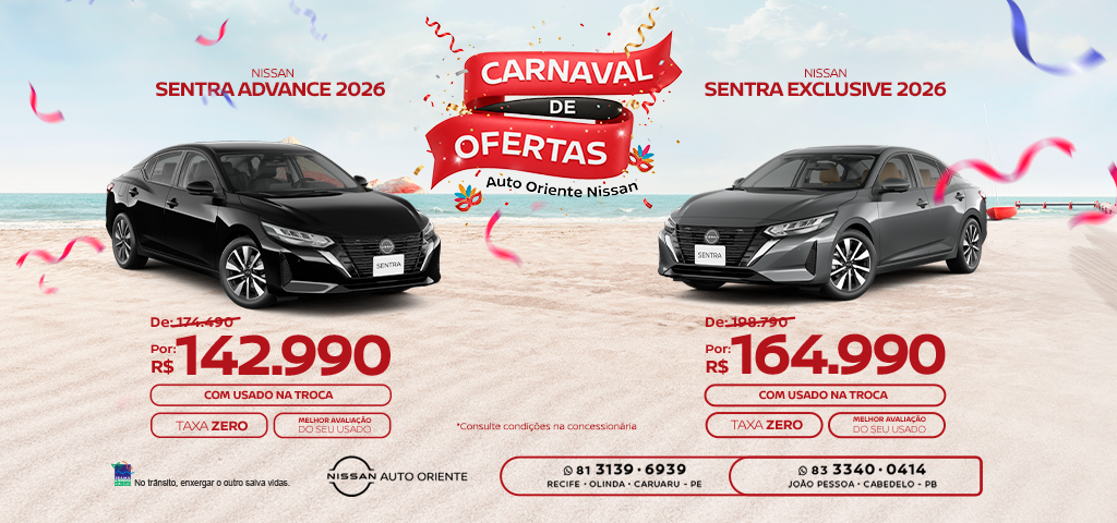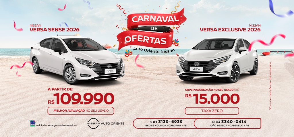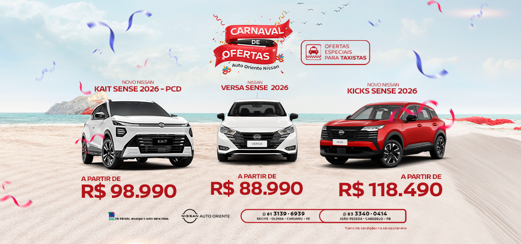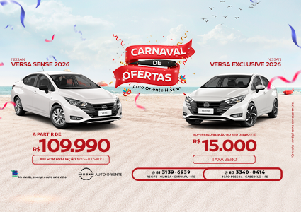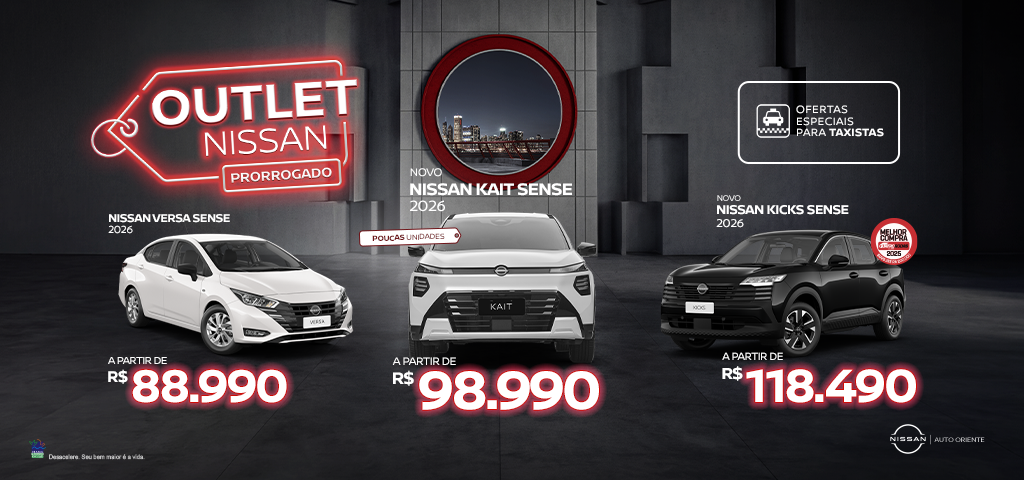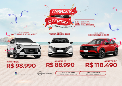 Aqui na Auto Oriente você tem à sua disposição toda a linha da Nissan 0km, para você experimentar na hora. Com um percuso desenvolvido especialmente para os nossos clientes, você poderá dirigir e conhecer de pertinho o carro que você tanto procura. Passe em uma Auto Oriente Nissan e solicite na hora seu test-drive ou para sua comodidade, preencha o formulário ao lado ou ligue para a nossa central de atendimento. QUEM TESTA COMPRA, COMPRA NISSAN!