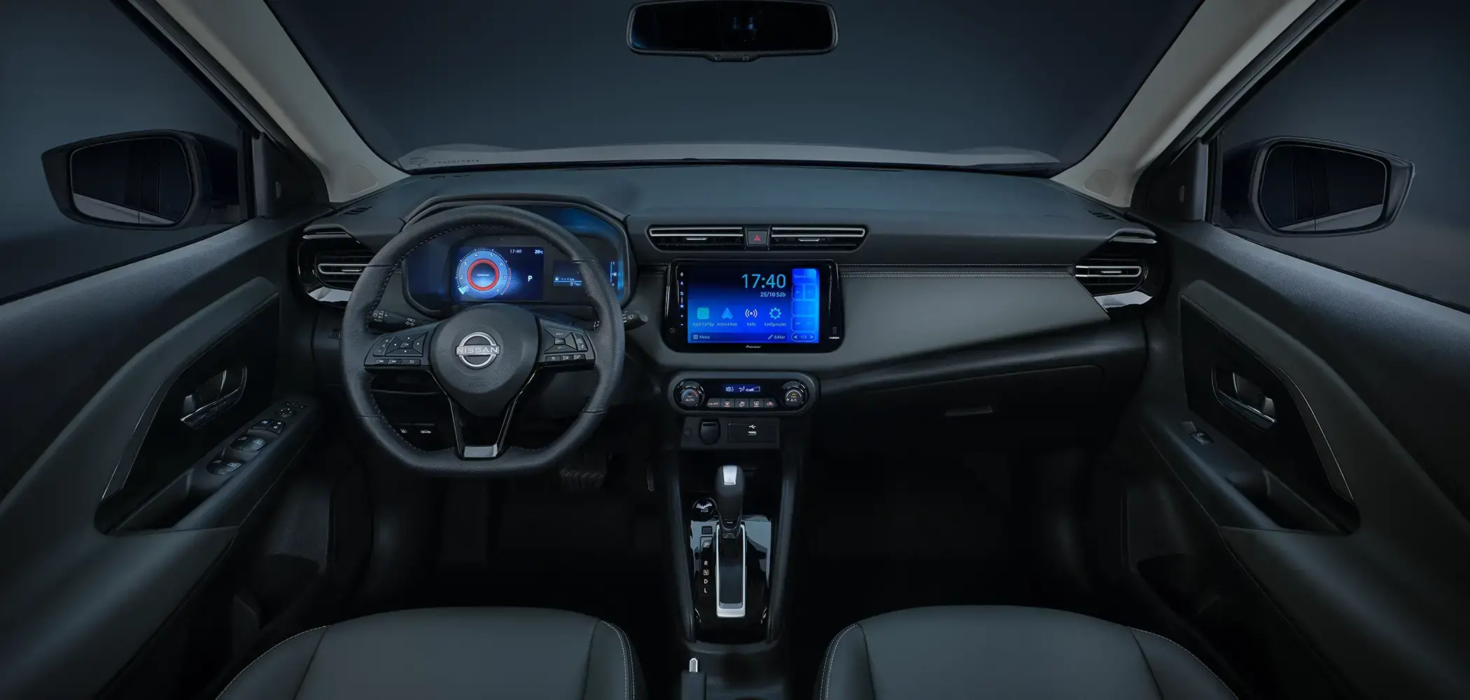 MultimídiaMultimídia Nissan Connect com display touchscreen colorido de 8", portas USB (tipo A + tipo C), Bluetooth® e conexão para Apple CarPlay® e Android Auto®